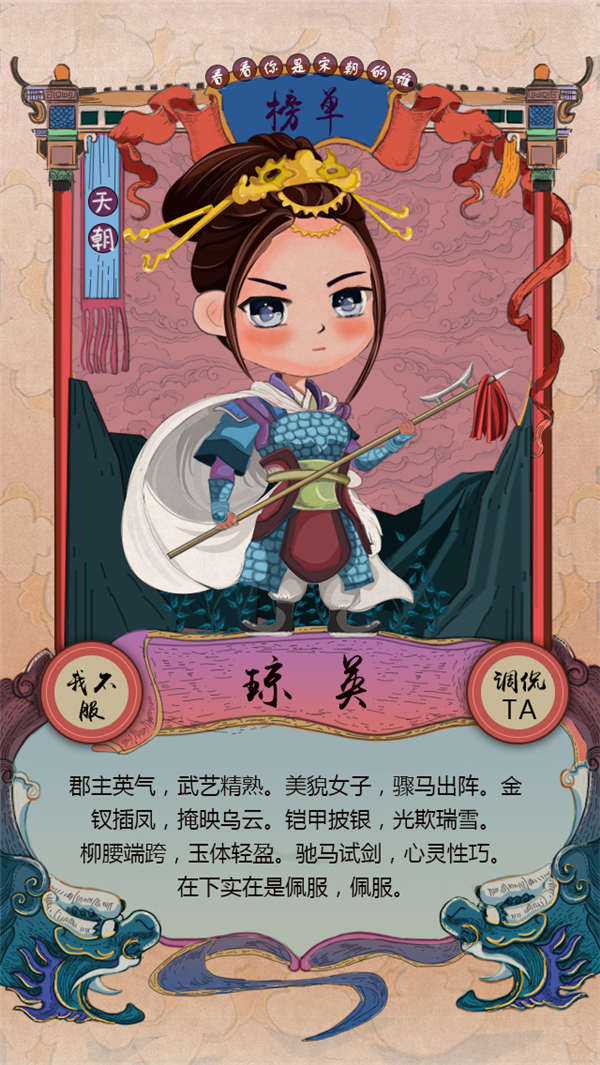 進入《夢回宋朝》H5頁面,伴隨著靜謐古典的音樂聲響起,你將進入了一個“魔性”的穿越場景,同時手機屏幕則會彈出“猜猜千年前你是大宋的誰?”、“今天清明上河園帶你穿越回宋朝”首頁字幕。首先點擊右下角“開始穿越”按鈕,緊接著會出現(xiàn)“給你一次重生的機會,你愿意成為? a:窈窕淑女 b謙謙君子”的二級頁面,如選擇后點擊b并按“繼續(xù)”按鈕,則又出現(xiàn)了“我希望是…?a江湖好漢 b達官貴人 c宋朝網(wǎng)紅哦”三級頁面,特別有意思的是,當你選擇c后,跳轉(zhuǎn)出來的最終網(wǎng)紅可能會是小乞丐、武大郎或路人甲,并會獲取專屬的人物解讀文案。最后,如若不甘心,你還可以點擊“我不服”返回重玩,或點擊“調(diào)侃TA”與好友分享。
