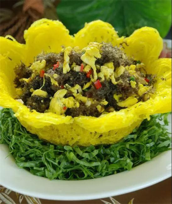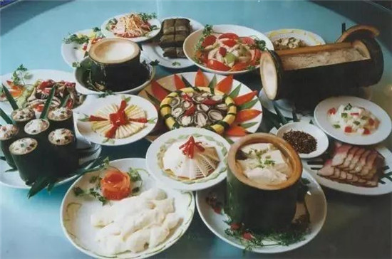 竹筍、竹蓀蛋、竹蓀菜、竹菌、竹海臘肉、竹筒豆花、竹筒酒、竹蓀酒、竹泡菜等竹菜匯成的全竹宴??芍^滿桌皆是竹,無(wú)竹不成席,令人大開眼界、垂涎欲滴。