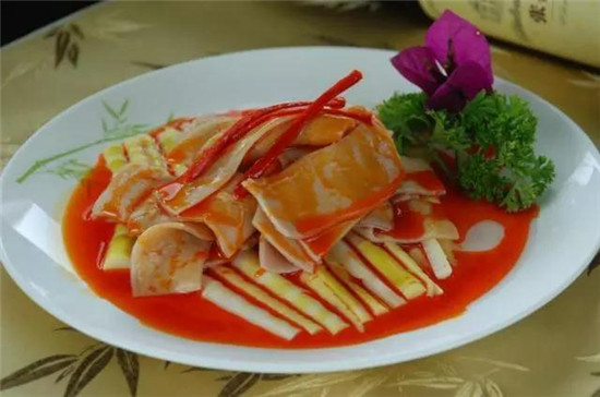 蜀南竹海一年四季有鮮筍:一月二月冬筍,三月四月春筍,五月苦竹筍、麻竹筍,六月甜龍竹筍、蘆竹筍,七月八月硬頭黃竹、慈竹筍,九月十月雞爪竹筍、綿竹筍,十一月十二月又有冬筍。此外,還有玉蘭片、清水筍、罐頭筍、鹽漬筍等幾十種竹筍,營(yíng)養(yǎng)豐富且性味甘,對(duì)人體有很好的滋補(bǔ)強(qiáng)健作用。聰明的竹海人把竹筍充分利用,做成集多種美味于一體的“全竹宴”,款待八方游客。
