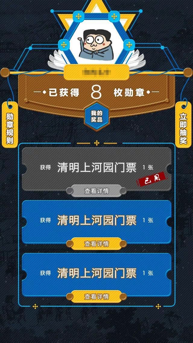 同時,游客在集齊一定數量勛章后,還可參與抽獎體驗,抽取景區(qū)門票、《大宋·東京夢華》、《大宋·汴河燈影》門票及景區(qū)特色伴手禮等豐富獎品。不過,按照勛章獲取及抽獎規(guī)則,游客每參與一次抽獎,將消耗固定數量的勛章。但比較暖心的是,清明上河園設定游客每間隔24小時即可重復獲取智慧產品勛章。當然,具體勛章獲取和使用規(guī)則以景區(qū)公布為準。