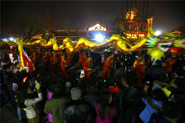 夜游賞民俗,舞龍、舞獅、古彩戲法、民俗大巡游等多場(chǎng)晚間演出;