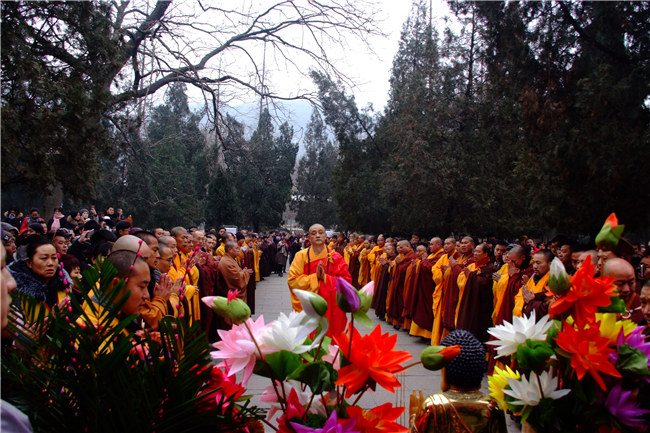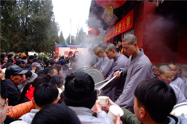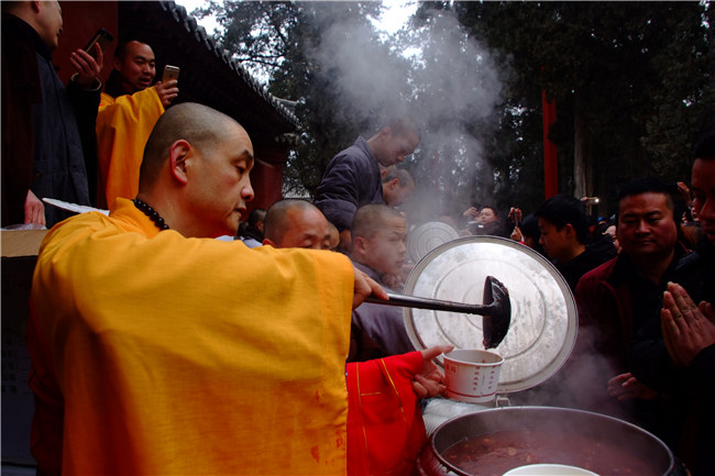 2018年1月24日,農(nóng)歷丁酉年臘月初八,欣逢釋迦牟尼佛成道紀(jì)念日,“臘八節(jié)施粥法會(huì)”在少林寺山門前隆重舉辦。上午九點(diǎn),少林藥局延琳法師帶領(lǐng)四眾弟子拈香禮佛,誦經(jīng)祈福,隨后,數(shù)千信眾、游人排隊(duì)接受施粥。此次法會(huì)意在傳遞佛教平等慈悲、圓融感恩的理念,弘揚(yáng)中華傳統(tǒng)民俗文化。