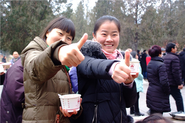 圖:對(duì)少林五行臘八粥贊不絕口的游客