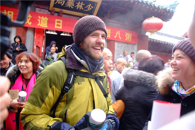 來(lái)自波蘭的Sarah此次是同她的兒子Alex一同前來(lái)少林寺的,提到今天的施粥法會(huì),她看起來(lái)非常高興,“沒(méi)想到來(lái)少林寺能遇上這樣一場(chǎng)民俗盛事,能夠在中國(guó)的傳統(tǒng)節(jié)日臘八節(jié),在禪宗祖庭、佛門圣地少林寺喝到一碗熱粥,真的是意義非凡。粥很好喝,我們非常開(kāi)心!”
