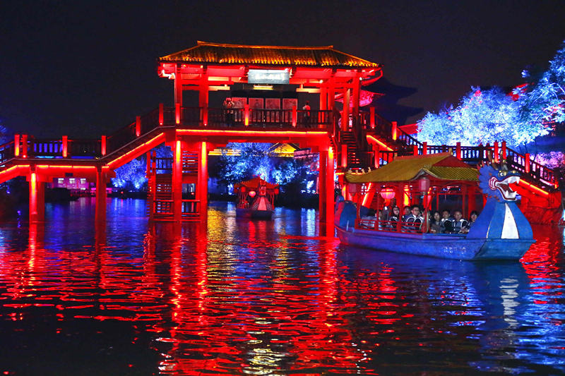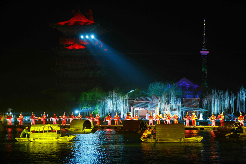 清明上河園大型夢幻夜游游船項(xiàng)目《大宋?汴河燈影》,是聲光電與大宋文化的又一次交融,是夢回千年暢游大宋汴河的深度體驗(yàn)。人在船上坐,船在畫中游,品味《大宋?汴河燈影》,共賞四季汴河美景。