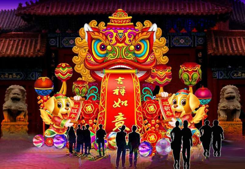 整個(gè)景區(qū)充分運(yùn)用了燈籠、彩門、彩旗、中國結(jié)、鞭炮、剪紙、雕刻等形式,著力顯示節(jié)日的喜慶與紅火。同時(shí)打造孔雀富貴、年年有魚、春到福到、財(cái)神迎春、華夏之禮、盛世花開、等五十余組年味十足的景觀造型,讓傳統(tǒng)經(jīng)典的年味感覺撲面而來。