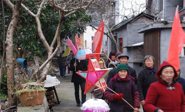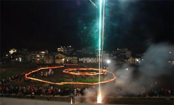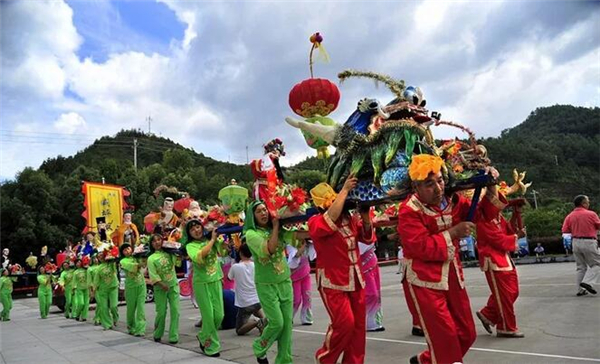 威坪鎮(zhèn)葉家村有700多戶,2100余人口,是省級中心村,相傳很早以前就有正月初三戲龍燈的習俗。葉家龍燈會活動由鑼鼓隊開道,接著由8人肩抬龍頭緊跟其后,隨后有50多個小伙子背著板龍,老人們手持花燈由葉氏宗祠出發(fā)經莊家、仙山街、潘家頭再到葉氏宗祠會合。龍燈游走全村,全程8公里,整個活動歷時3小時。在葉家,舞龍燈有祝愿新年龍騰虎躍、吉祥如意之意,為討個好彩頭,村民會自發(fā)燃放煙花爆竹迎接龍燈。