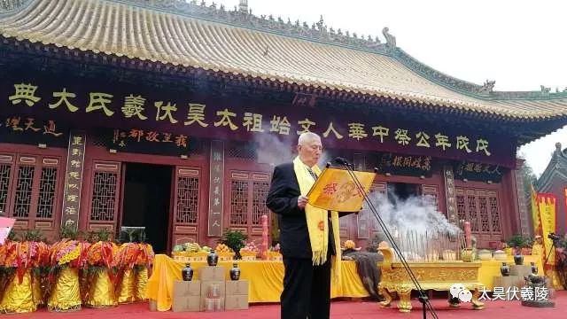 6時27分,恭祭大典正式開始。撞鐘、擊鼓、鳴禮炮。隨后,中國僑聯(lián)原主席莊炎林先生、中國先秦史學會會長宋鎮(zhèn)豪先生、中國社會科學院考古所研究員李健民先生、清華大學教授廖名春先生、CECU中國企業(yè)資本聯(lián)盟主席杜猛先生、羲皇故里天水市張建杰先生、老子暨中原文化研究中心主任高恒中先生、河南省孔子學會副會長李治中先生、河南省范蠡商文化促進會副會長王家敏女士和秘書長蘇鈺洋先生、太昊陵友好合作的景區(qū)嘉賓,及社會各界代表分別向人祖敬獻花籃、敬香、獻爵。中國僑聯(lián)原主席莊炎林先生恭讀祭文。公祭大典儀式結(jié)束后,參祭人員深情拜謁了伏羲陵。