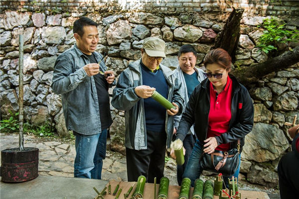 紀(jì)老對(duì)各種竹編和竹制品饒有興趣,拿在手里,仔細(xì)地翻看。他說(shuō),村民們就地取材,編出這么精美的工藝品,真是心靈手巧。