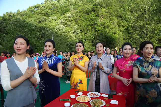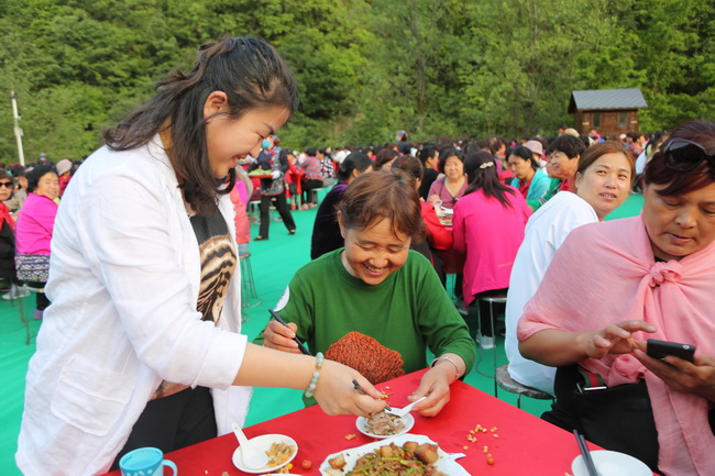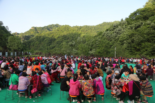 由于開幕式的第二天恰逢母親節(jié),為繼承優(yōu)秀傳統(tǒng)文化,弘揚(yáng)家庭和諧風(fēng)尚,老君山景區(qū)特別推出了第三屆仙境朝圣節(jié)的溫情環(huán)節(jié):“古韻中國?感恩母親節(jié)”——婆媳宴。宴會(huì)的菜式以欒川當(dāng)?shù)靥厣摹鞍舜笸搿睘橹?,近千名婆媳到場參加,他們既有附近十里八鄉(xiāng)的淳樸鄉(xiāng)民,也有平時(shí)就相處得和睦美滿的城市家庭婆媳,在看到活動(dòng)預(yù)告后就早早報(bào)名,趁這個(gè)周末慕名而來參加,在欣賞老君山秀麗山水美景的同時(shí),也借母親節(jié)這個(gè)特別的日子,以這樣別開生面的方式感恩緣分的美好和表達(dá)對(duì)彼此的大愛無疆。