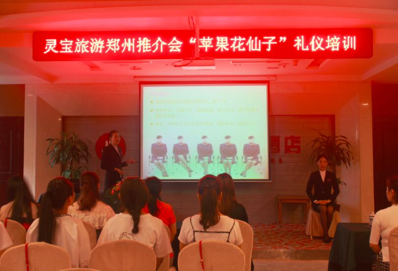 蘋果花仙子作為靈寶形象代言人,6月2日她們?cè)谧辖饘m國(guó)際大酒店進(jìn)行專業(yè)的禮儀培訓(xùn)后,將參加在鄭州舉行的“2018靈寶旅游推介會(huì)”。