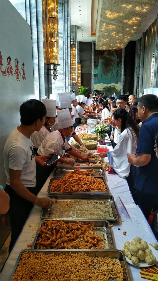 隨后整場推介會來到了最高潮,靈寶市委書記孫淑芳邀請省旅游局副局長周耀霞共同按亮了玩美靈寶啟動球。接著,由來自靈寶的藝術(shù)團獻上的《水墨弘農(nóng)》,《感悟道德經(jīng)》,《點背道德經(jīng)》等文藝演出,提前帶大家感受了溫馨動人的靈寶!韻味十足的表演過后,來自靈寶的美食家現(xiàn)場烹制了肉夾饃、一生涼粉、甑糕等靈寶特色美食,供大家品嘗,把獨屬靈寶的味道分享給了現(xiàn)場的朋友們!接下來開始的精彩刺激并全網(wǎng)直播的大胃王表演更是讓大家近距離感受到了靈寶美食的魅力。