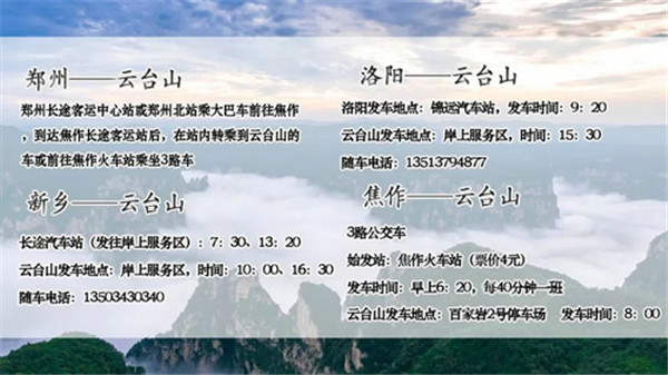 鄭云高速(鄭州-云臺山)40分鐘直達,云臺山站下站即可。