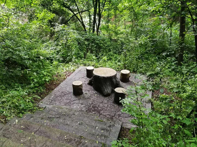 三三兩兩,結(jié)伴而行,逛累了,就歇歇腳吧。駐足休憩于林蔭隧道的小憩處,看著翠綠、聞著花香、聽著鳥語(yǔ),心漸漸平靜,我們也得到舒緩放松,清涼至極。
