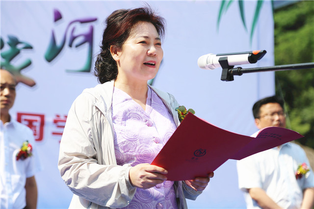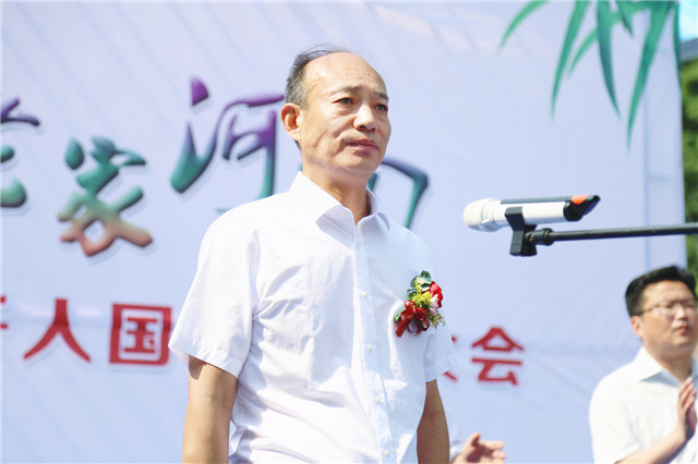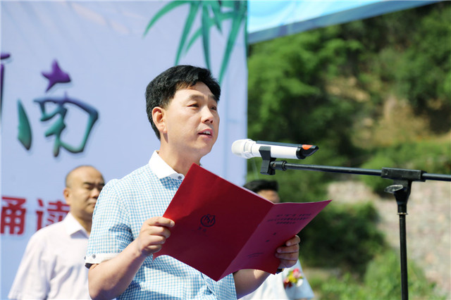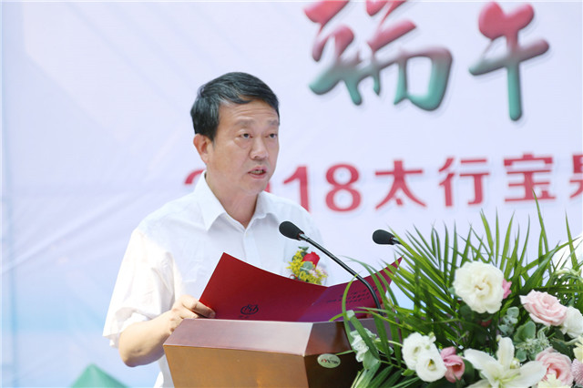 河南省旅游局副局長朱建偉宣布:端午?“粽”情 老家河南--—2018太行寶泉趣味龍舟賽暨千人國學(xué)誦讀大會開幕。