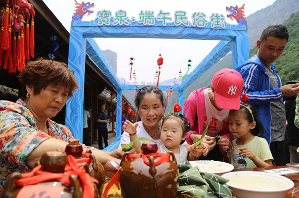 在剛過(guò)去不久的中國(guó)傳統(tǒng)節(jié)日-端午節(jié),位于河南輝縣太行山中的寶泉旅游度假區(qū)舉辦了大型的“趣味龍舟賽暨千人國(guó)學(xué)誦讀大會(huì)”?,F(xiàn)場(chǎng)不僅可以在太行寶泉的高峽平湖間欣賞標(biāo)準(zhǔn)龍舟競(jìng)速賽、還可以邀上同行的三五好友一起在充氣式龍舟上來(lái)一場(chǎng)趣味龍舟賽、更有包粽子、制香囊、編織五彩手環(huán)等傳統(tǒng)民俗DIY體驗(yàn),讓你在碧水丹山的寶泉有機(jī)會(huì)為你的親人、愛(ài)人送上一個(gè)“保全”安康幸福的祈福香囊。