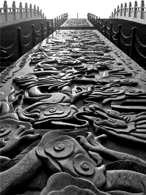 兩坡拱鑲了四塊刻有盤龍浮雕大青石