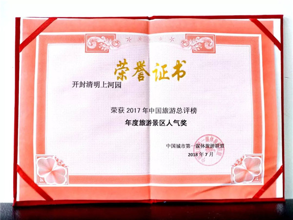 2017中國(guó)旅游總評(píng)榜全國(guó)總榜是聯(lián)盟內(nèi)各媒體成員、單位在各自區(qū)域內(nèi)本著公平、公正、公開(kāi)的原則進(jìn)行區(qū)域分榜評(píng)選,最終選出全國(guó)總榜榜單。清明上河園以驕人的旅游業(yè)績(jī)獲評(píng)“年度旅游景區(qū)人氣獎(jiǎng)”。旅游景區(qū)人氣獎(jiǎng),我們名副其實(shí)!獲得旅游景區(qū)人氣獎(jiǎng),因?yàn)槲覀儗?zhuān)業(yè)……