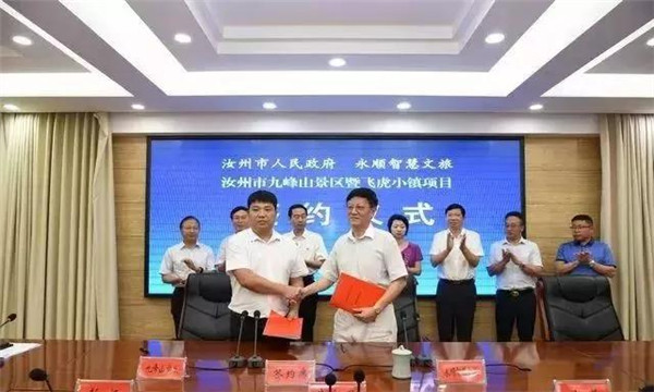 7月23日,永順智慧文旅發(fā)展有限公司和九峰山景區(qū)暨飛虎小鎮(zhèn)籌委會(huì)合作協(xié)議簽約儀式在市委舉行。市委書(shū)記、市長(zhǎng)陳天富出席并鑒簽。