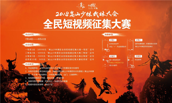 7月28日,讓我們懷揣武俠夢(mèng)想,相約嵩山少林!在這里,再現(xiàn)經(jīng)典武俠橋段;在這里,大膽秀出你的武俠世界;在這里,人人都可以是自己的導(dǎo)演!2018嵩山少林武林大會(huì)全民短視頻征集大賽仍在火熱進(jìn)行中,只要將你在嵩山少林景區(qū)標(biāo)志性建筑前創(chuàng)作的創(chuàng)意視頻上傳至抖音,關(guān)注并@嵩山少林景區(qū),一不小心就能成為網(wǎng)紅,獲得一萬(wàn)元現(xiàn)金大獎(jiǎng),心動(dòng)了嗎?本周六,走起!