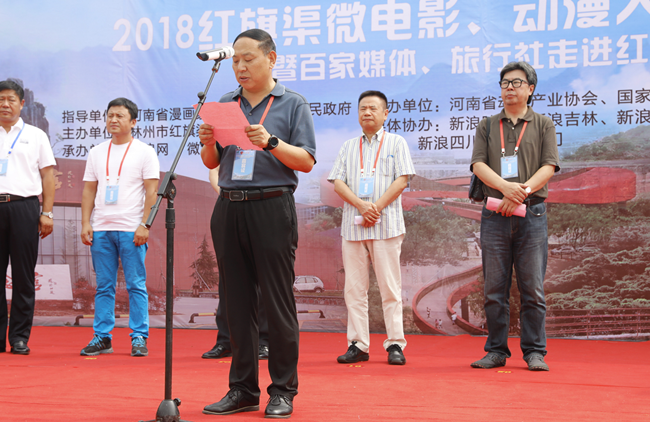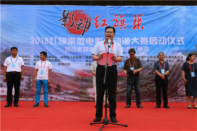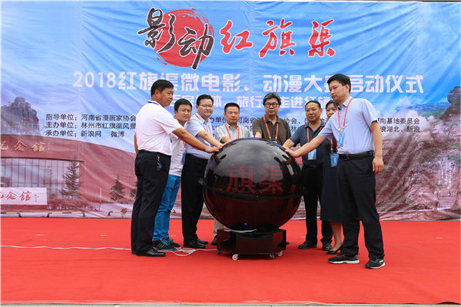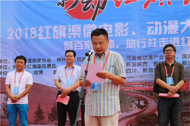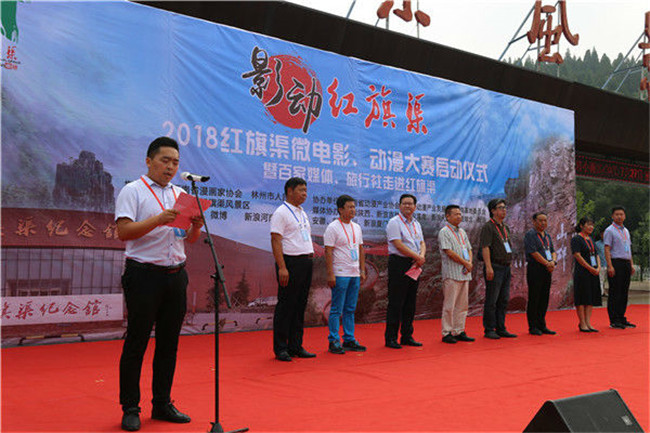 影動(dòng)紅旗渠,傳遞中國(guó)夢(mèng)。7月27日上午,紅旗渠風(fēng)景區(qū)舉辦了“影動(dòng)紅旗渠——2018年紅旗渠微電影、動(dòng)漫大賽啟動(dòng)儀式暨百家媒體、旅行社走進(jìn)紅旗渠”活動(dòng),中國(guó)動(dòng)畫(huà)學(xué)會(huì)會(huì)長(zhǎng)余培俠,人民日?qǐng)?bào)漫畫(huà)增刊主編肖承森,河南省動(dòng)漫產(chǎn)業(yè)協(xié)會(huì)會(huì)長(zhǎng)、河南省漫畫(huà)家協(xié)會(huì)主席張國(guó)曉,新浪河南網(wǎng)營(yíng)銷(xiāo)總監(jiān)王超群,林州市人民政府副秘書(shū)長(zhǎng)侯成山,林州市文聯(lián),河南天河影視集團(tuán),電影、電視藝術(shù)家協(xié)會(huì),紅旗渠風(fēng)景區(qū)等領(lǐng)導(dǎo),和微電影、漫畫(huà)家協(xié)會(huì)會(huì)員,新聞媒體,旅行社共計(jì)500余人出席此次活動(dòng)。