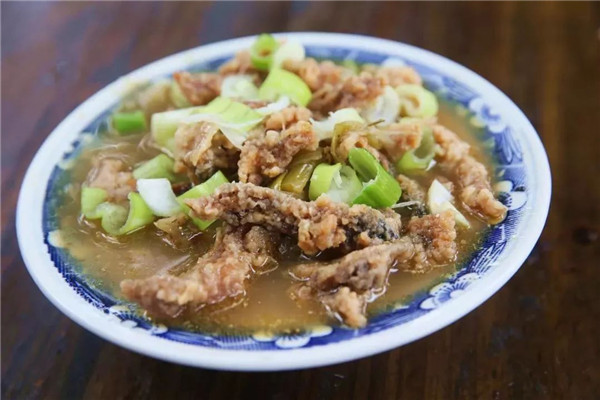 在兒時的記憶深層,往往藏著一種美味,非常愛吃而又不可多得,平凡而又驚艷。老味道就像裊裊炊煙,遠遠看去就相信有美味正在發(fā)生。剛出鍋的黃燜魚清清爽爽,一點都不油膩粘糊,酥軟的魚肉輕輕一撥就與魚刺分離。其選材主要以黃河野生小雜魚“離冒歐”(音)、 爬地虎為主,做法也是十分講究:收拾/腌制/裹面(薄薄一層)/炸(一看二聽三手感)/燜(老湯秘制料燜制一小時左右)。