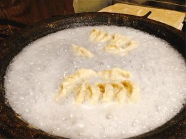 這份鍋貼,一煎就是136年。中華名吃——邢家鍋貼。以“皮薄餡大形似船,黃焦酥脆翅鱗連,灌湯流油清香味,滿口溢美不易散?!睘樘攸c,早已享譽四面八方、大江南北。有人說看起來像煎餃?其實兩者大不相同,煎餃需要先煮后煎,而且是一次煎成;鍋貼則千萬不能用水煮,而是選用生面生肉直接上熱鍋,在這個期間需要不斷轉(zhuǎn)動鍋子和揭開鍋蓋淋水,這樣一來,最大程度地呈現(xiàn)了面皮的良好口感。吃一口,外焦里嫩、肉餡飽滿!有喜歡的再蘸一點調(diào)料,吃它個五份、六份也不奇怪!