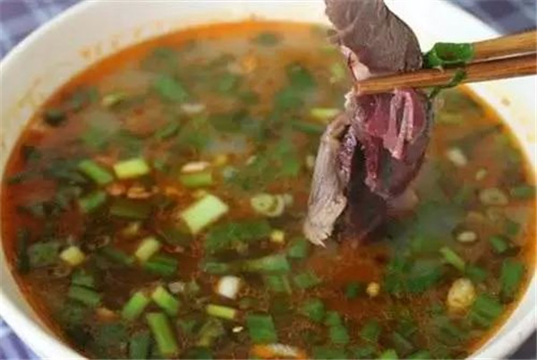 慢火煨燉,10年老湯保證味道的純正。二十種料熬成湯,純正驢肉湯中放,大火滾開小火燒,熟到透徹色澤光,酥軟適口肉不柴,火燒夾肉味綿長。滿滿的大碗湯,泡上餅絲,抄開筷子翻幾翻已經(jīng)柔軟的餅絲,慢慢地消受美味。青白的蔥花,火紅的辣椒油是最好的點綴,顧不得燙嘴,吹吹先抿一口再說。嘖~還真是美。一碗鮮湯,足以讓你食指大動,火力全開。