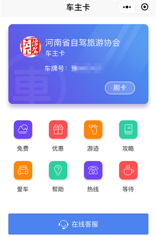 自 駕 車 主 卡 使 用 方 法步驟一:抵達景區(qū)售票處,打開微信向下拉動,找到或搜索“自駕車主卡”小程序,也可以打開“河南旅游網(wǎng)”微信公眾號的底端菜單“車主卡”,直接進入到小程序。