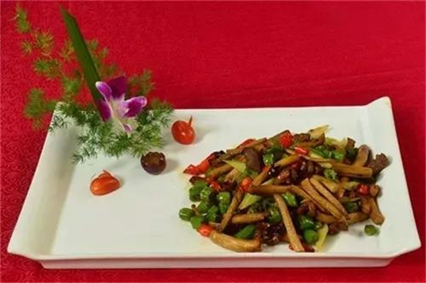 在長寧蜀南竹海景區(qū),由當?shù)厝司难芯?、制作和推廣竹蓀和竹筍菜系,并將竹筍菜、竹蓀菜和與竹有關的菜肴匯聚而成了獨有的地方特色。