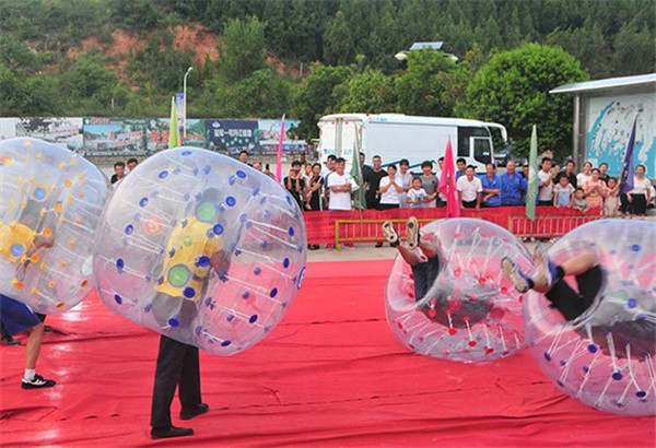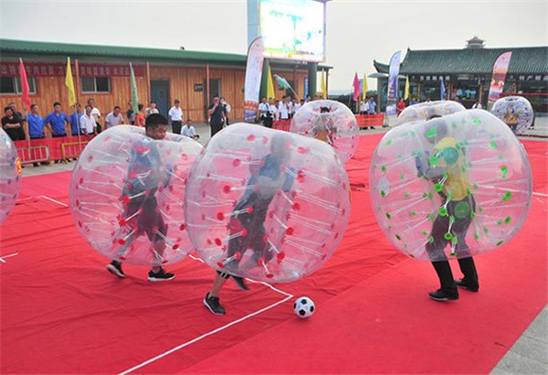 黃牌無效,碰撞有理,進球不是目的,撞出歡樂才有意義。丹江大觀苑“泡泡足球賽”,將足球活動、碰碰車、互動游戲融于一體,用新穎的比賽形式,讓來到景區(qū)的游客真正體會到了撒歡的精髓。比賽現(xiàn)場,12名來自各地的游客,分別組成“激情隊”和“撒歡隊”,身著景區(qū)免費提供的泡泡裝,化身造型別致的特型選手,在賽場上追逐碰撞,盡情撒歡,上演了一場堪稱“人體碰碰車”的花式足球賽。賽場之上,兩隊球員積極拼搶,賽場周圍,眾多游客吶喊助威,力量對抗中的倒地翻滾、激情碰撞中的精彩進球、暈頭轉(zhuǎn)向中的烏龍球等精彩場面不時出現(xiàn),整個現(xiàn)場掌聲如雷,歡聲不斷。在賽場比分定格為1比1后,雙方進入到緊張的點球大戰(zhàn),最終“撒歡隊”憑借著點球環(huán)節(jié)的一粒進球,以1分優(yōu)勢取得勝利,成為了本次“泡泡足球賽”的獲勝隊伍!