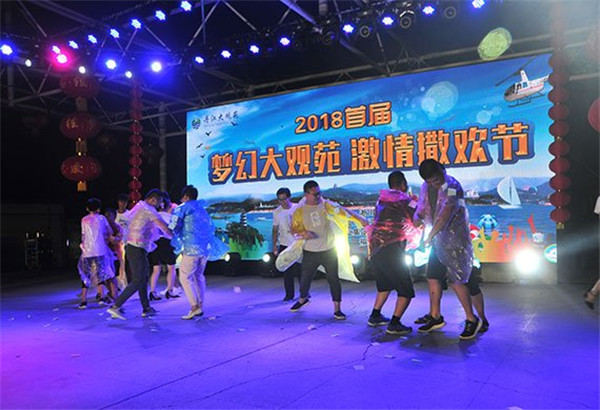 2018丹江大觀苑首屆“夢幻大觀苑激情撒歡節(jié)”,由丹江大觀苑景區(qū)和河南支點智業(yè)集團聯(lián)合舉辦,整個活動自7月21日期至8月11日,共為期一個月,旨在通過豐富多彩的主題活動和精彩紛呈的主題撒歡晚會,讓來到丹江大觀苑的游客,發(fā)現(xiàn)快樂、享受快樂,度過一個放飛心情、盡情撒歡的快樂之旅。下周六,本屆激情撒歡節(jié)將迎來收官之作,屆時,來自全國各地的知名藝人將云集閉幕式晚會,用勁歌熱舞和民俗絕活,唱響丹江湖,舞動大觀苑,為萬千游客的丹江大觀苑之旅,增添無窮樂趣。