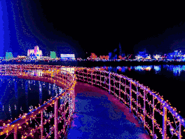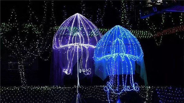 在華燈初上的五彩大地?zé)艄庹?,置身于流光溢彩中,看海豚跳躍、晶瑩剔透的水母、舞動(dòng)的水晶鞋、相互依偎的幸福戀人、還有彩蝶飄飄、純潔的白天鵝、閃到爆的大鉆石……