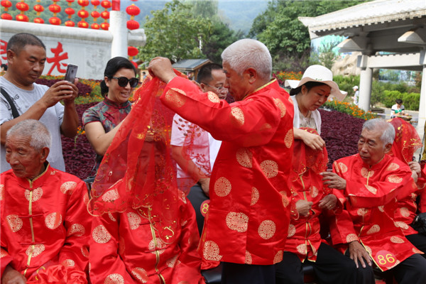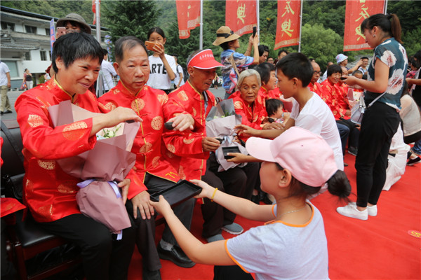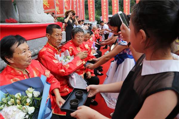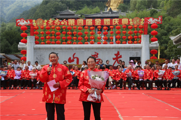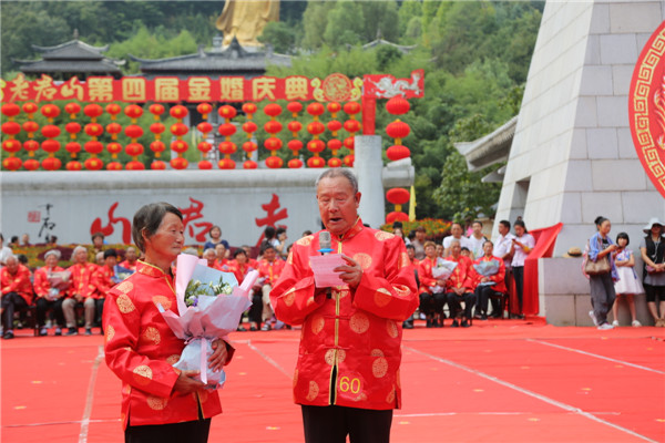8月16日,在傳統(tǒng)的七夕佳節(jié)到來之際,由欒川縣文明辦、老君山文旅集團、老君山林場、河南樂游文旅集團共同主辦的,以“白首相依·愛在仙山”為主題的老君山第四屆金婚慶典在老君山闋門廣場隆重舉行。來自省內(nèi)外各地的金婚老人盛裝出席。久慕老君山獨特美景的近萬名省內(nèi)外游客紛至沓來,共同見證了這些老人們歷久彌堅的金婚風雨情。