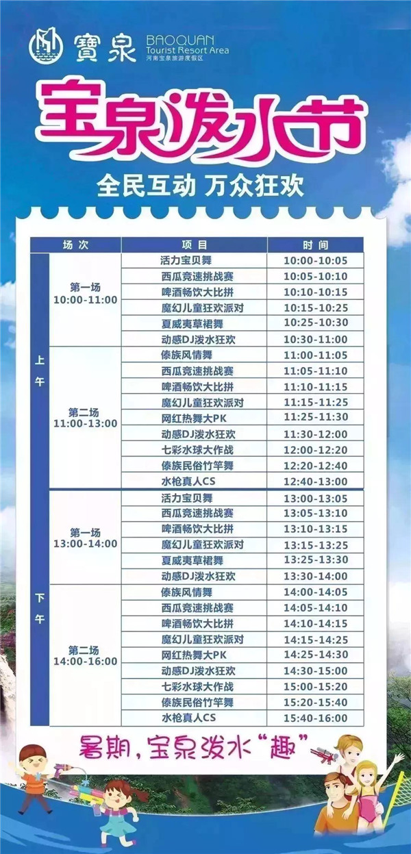 寶 泉 潑 水 狂 歡 節(jié),萬(wàn)眾狂歡    夏日派對(duì)    青春喧鬧,18 周 歲 以 下,免  門(mén)  票。不要辜負(fù)美好時(shí)光,最后暑期快去爽一爽吧~