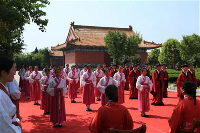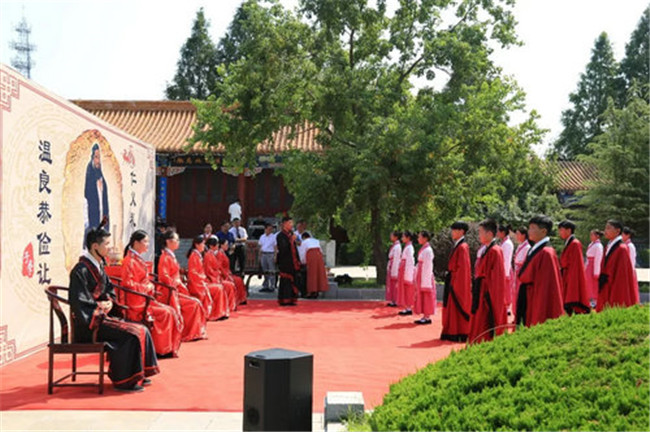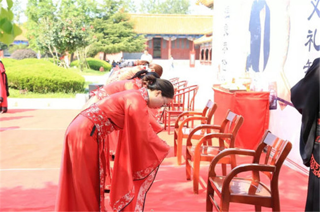 河南衛(wèi)視《河南新聞聯(lián)播》又播出教師節(jié)專題報(bào)道:在永城芒碭山,一場以崇禮明德尊師尚學(xué)為主題的敬師禮濃情上演,參與體驗(yàn)的師生著古裝、行古禮,大家在體驗(yàn)傳統(tǒng)禮儀的同時(shí),更是以實(shí)際行動(dòng)倡導(dǎo)尊師重教的優(yōu)良傳統(tǒng)。儀式上,學(xué)子們朝圣揖孔,向孔老夫子表達(dá)敬意。致敬中國儒家文化的同時(shí),又向老師行叩首禮,一拜一叩間,流露出感人的師生情誼。
