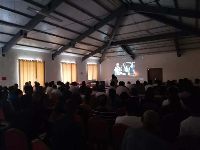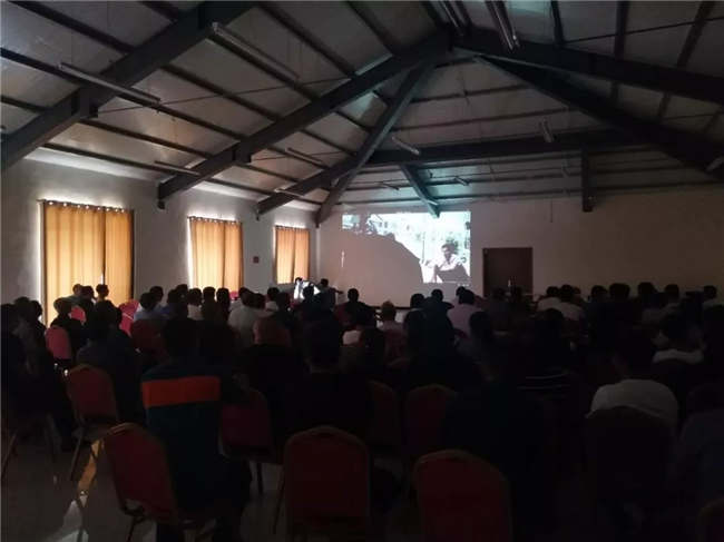 在公益首映這天,我們沒有絢麗的煙火和震耳欲聾的禮炮!一切都顯的樸實(shí)無華,兩條橫幅就說明了一切。就像這部電影一樣樸實(shí)而不簡(jiǎn)單。本次首映我們邀請(qǐng)到了寄料鎮(zhèn)相關(guān)負(fù)責(zé)人、《汝海茲風(fēng)》攝制組導(dǎo)演、制片人、編劇、主演共同參與啟動(dòng)儀式,來自寄料鎮(zhèn)平王宋村的父老鄉(xiāng)親及社會(huì)各界人士和九峰山部分員工達(dá)200余人共同觀看了影片的首映。同時(shí)就本次公映,景區(qū)總經(jīng)理徐登貴徐總代表景區(qū)公司對(duì)蒞臨儀式的各位領(lǐng)導(dǎo)和客人表示歡迎,感謝劇組成員把黨的惠民政策以微電影的形式展現(xiàn)給大家。