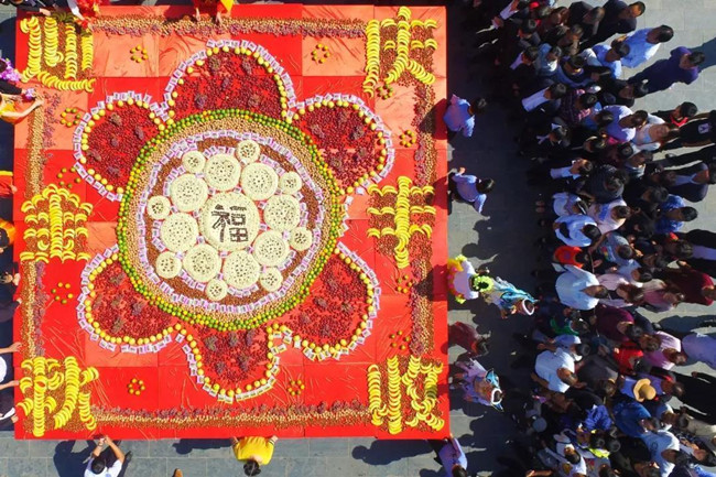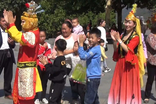 9月23日上午11點,在雞冠洞景區(qū)中心廣場上,大型豐收糕、水果、干果供游客免費品嘗,喜迎金秋,歡慶豐收。