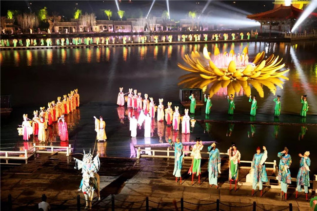 水上實景演出《大宋·東京夢華》是由八闕經(jīng)典宋詞串聯(lián),運用大量的科技手段,制造出夢幻的效果,展示出北宋王朝的興衰。