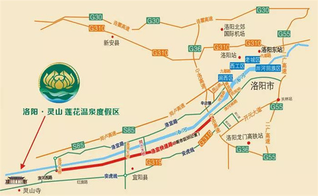 1、連霍高速---寧洛高速---洛陽新區(qū)站----洛宜快速通道---洛陽靈山蓮花水城