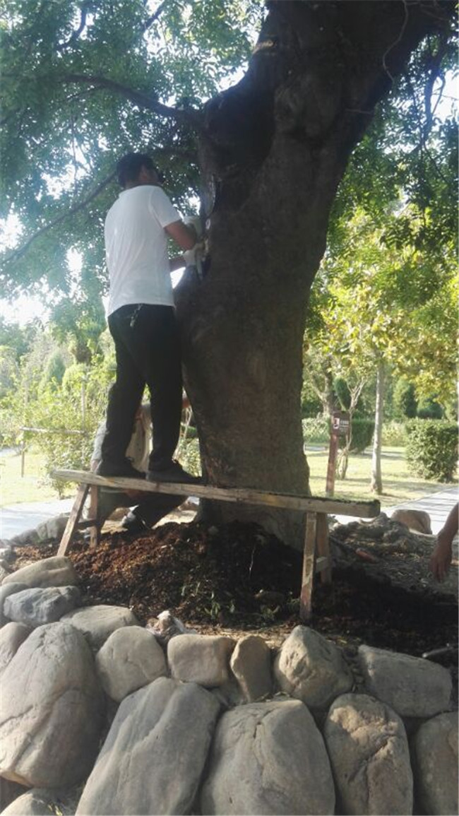 二是為實(shí)施全程保護(hù),對(duì)所有名木古樹(shù)建立檔案,分級(jí)編號(hào),對(duì)長(zhǎng)勢(shì)較弱,有病蟲(chóng)害現(xiàn)象發(fā)生的樹(shù)木,明確專人管護(hù),適時(shí)噴藥、補(bǔ)肥,做到防蟲(chóng)、防病、復(fù)壯三不誤。