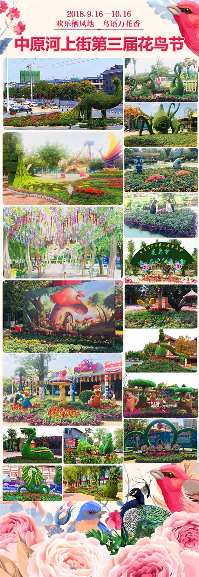 網(wǎng)紅紫藤長(zhǎng)廊浪漫唯美,幾十組大型花鳥(niǎo)造型震撼亮相,20余組卡通動(dòng)漫玩偶裝點(diǎn)兒童樂(lè)園,歡樂(lè)無(wú)限。美女云集,網(wǎng)紅打卡地!恍惚間,神州鳥(niǎo)園仿若人間仙境,彩蝶紛飛,蜜蜂起舞,處處生機(jī)勃勃!