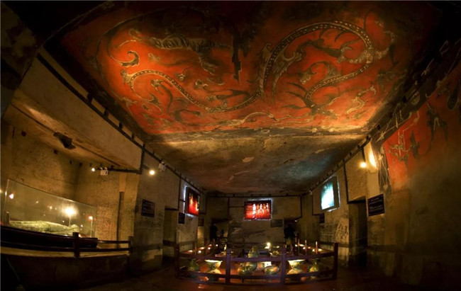 西漢梁國(guó)王陵墓群“斬山為廓,穿石為藏”,其中梁孝王王后陵被譽(yù)為“天下石室第一陵”,該陵墓容積達(dá)6500余立方米,墓室內(nèi)有中國(guó)最早的冰柜、坐便廁所、神秘相思道,構(gòu)筑絕妙,氣勢(shì)恢宏。梁共王陵內(nèi)出土的“四神云氣圖”彩繪壁畫(huà),具有極高的歷史、藝術(shù)、科研價(jià)值。