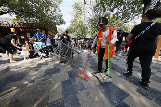 “十一”期間,景區(qū)通過招募大學(xué)生志愿者、增加保潔人員和安保人員,進(jìn)一步擴(kuò)大景區(qū)的服務(wù)隊(duì)伍,加上景區(qū)原有的工作人員,今年十一,清明上河園首次實(shí)現(xiàn)在高峰階段服務(wù)人員與游客的比例達(dá)到1:15,即一名服務(wù)人員服務(wù)15名游客,這為全方位服務(wù)游客、全面解決游客問題奠定了堅(jiān)實(shí)基礎(chǔ)。
