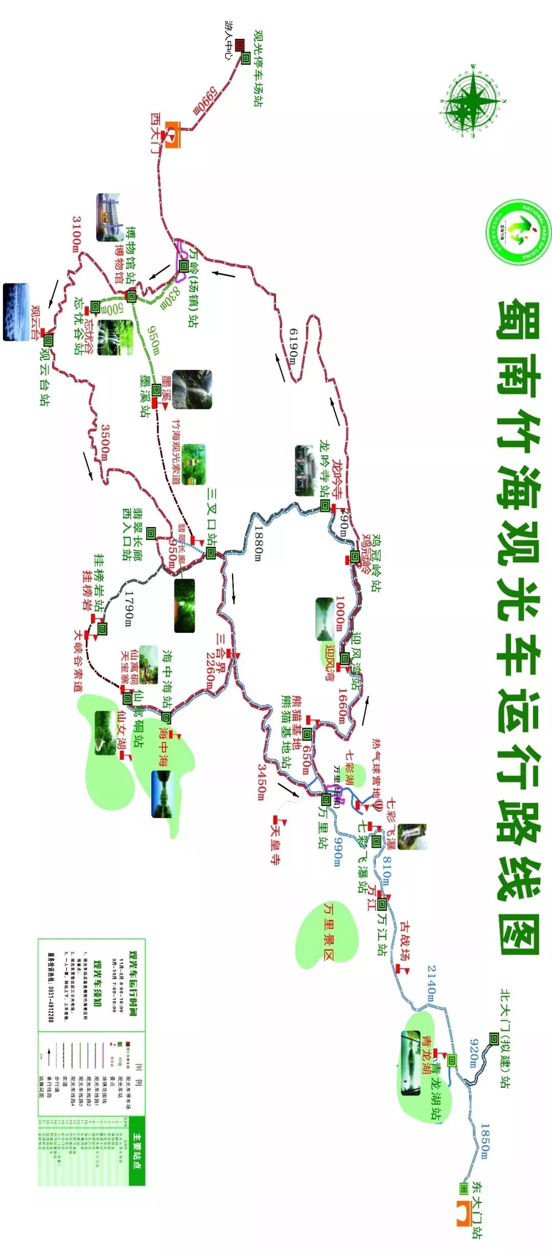 一是“全天候”保障。竹海景區(qū)旅游觀光車在淡季(每年11月初至次年2月末),運行時間為每天早上8點至下午6點共10個小時;旺季(每年3月初至11月末),運行時間為每天早上7點至晚上7點共12個小時,并可視當日客流情況延長運行時間,同時另行安排觀光車輛對夜間進山游客進行機動保障,確保游客出行方便、快捷。二是“全方位”覆蓋。蜀南竹海觀光車設置總站1個、樞紐站4個、景點和支線交叉口站17個、招呼站若干個,首批投入觀光車40輛,開通運行線路4條,覆蓋了景區(qū)忘憂谷、觀云臺、翡翠長廊、龍吟寺、海中海、仙寓硐、熊貓基地、七彩飛瀑、青龍湖等主要景點,確保實現(xiàn)景區(qū)主要景點“一網(wǎng)打盡”。三是“不限次”暢游。嚴格執(zhí)行物價部門規(guī)定,觀光車票價為55元/人,自購買日起3日內有效,離開景區(qū)或超出時限后失效,游客憑票在3天內可多次使用,在想去的不同景點自由上下參觀游覽,較好地解決了游客尤其是散客對景點的選擇和景區(qū)乘車難等問題,極大地方便了游客出游。