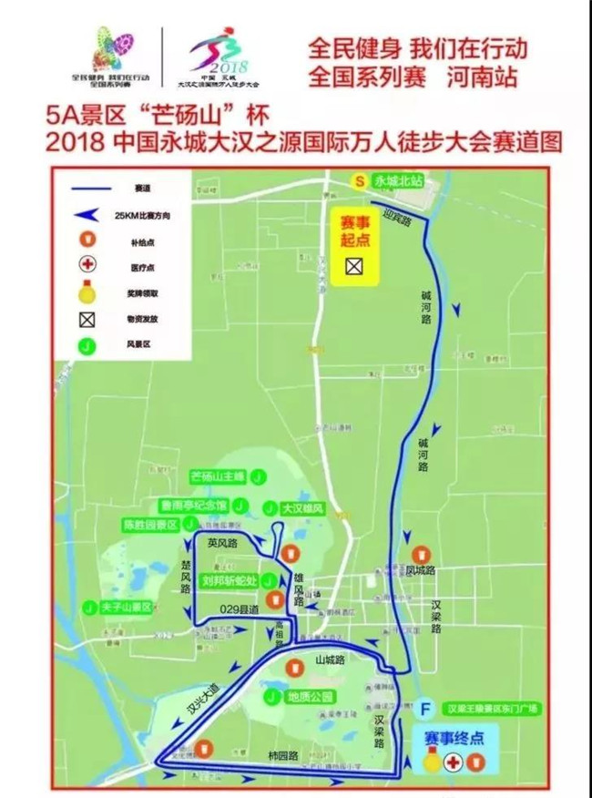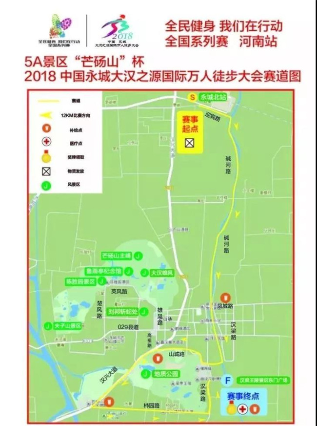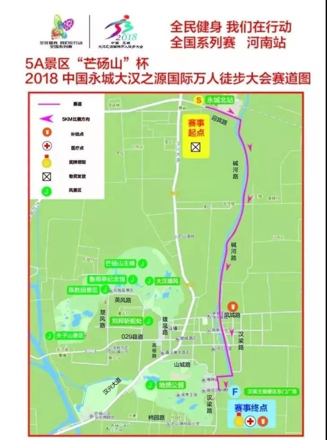 06:30--08:00參賽選手在永城體育中心(歐亞路西段)集結(jié),由大巴車(chē)統(tǒng)一運(yùn)送到比賽地點(diǎn)),(返程14:00-16:00參賽選手在漢梁王陵景區(qū)停車(chē)場(chǎng)集合,統(tǒng)一乘坐大巴車(chē)返回至永城市體育中心,比賽地點(diǎn):永城北站、永城市芒碭山旅游區(qū)。