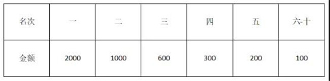 注:①獎(jiǎng)金數(shù)額為稅前金額,組委會(huì)將按國(guó)家有關(guān)規(guī)定代扣稅金;