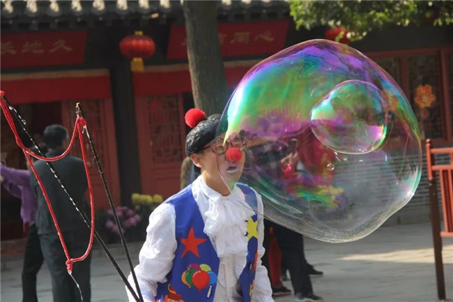 在中國開封第36屆菊花文化節(jié)期間,詼諧的小丑、可愛的玩偶、幽默的氣球人等齊聚花開滿園、菊香四溢的清明上河園,和游客展開了一場歡樂逗趣的互動(dòng)~~