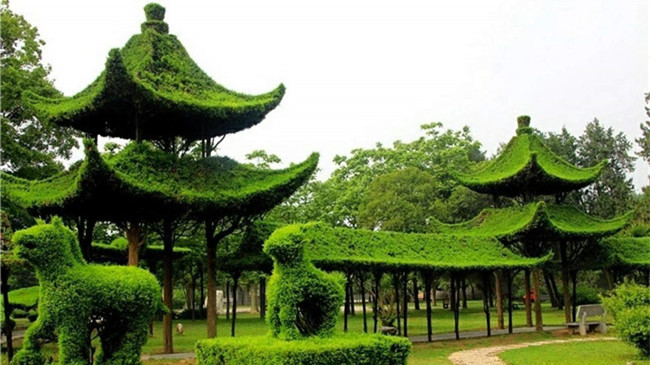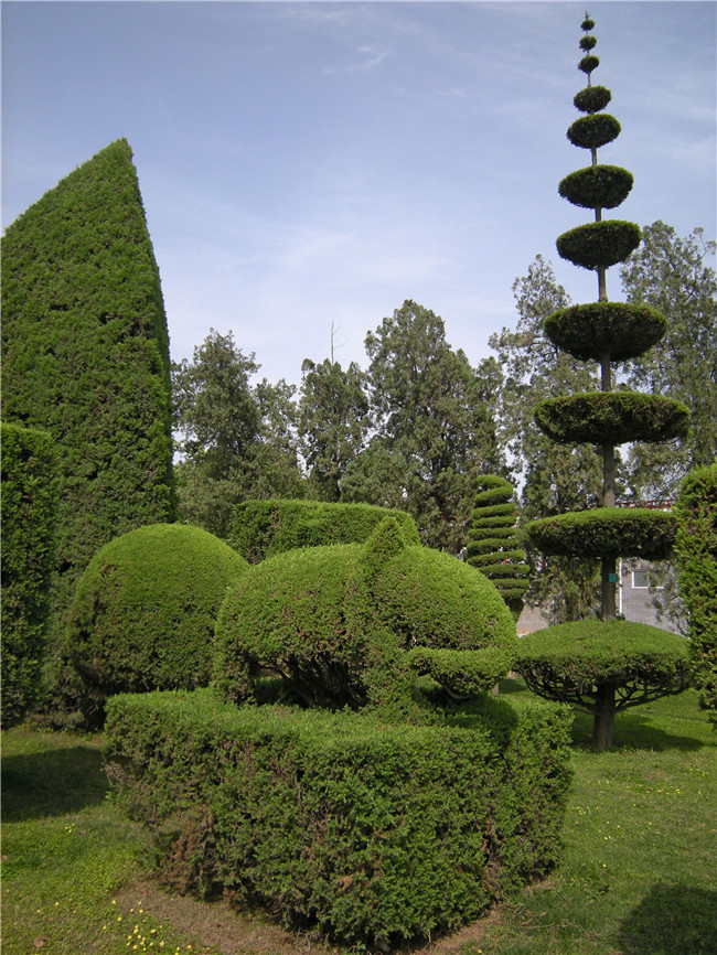 太昊陵附屬景區(qū)獨(dú)秀園是一處以松柏造型為主題景觀(guān)的園林藝術(shù)大觀(guān)園,園內(nèi)有六角涼亭、百鳥(niǎo)朝鳳、火車(chē)奔馳、孔雀開(kāi)屏、金蛇窺雀、青龍戲珠、長(zhǎng)頸鹿鳴、沙漠之舟、樓、臺(tái)、亭、閣、珍禽、異獸等各種造型200多種,千姿百態(tài),栩栩如生。這些園林奇葩是怎么修剪出來(lái)的呢?