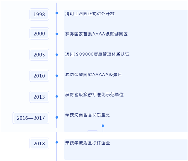 清明上河園一路走來,曾先后獲得中國(guó)旅游知名品牌、國(guó)家文化產(chǎn)業(yè)示范基地、國(guó)家AAAAA級(jí)旅游景區(qū)、影響世界的中國(guó)文化旅游名景、全國(guó)旅游系統(tǒng)先進(jìn)集體、全國(guó)文明景區(qū)示范點(diǎn),文明誠(chéng)信購(gòu)物景區(qū)、納稅信譽(yù)A級(jí)單位、AAA級(jí)信用單位、首屆開封市市長(zhǎng)質(zhì)量獎(jiǎng)、河南省省長(zhǎng)質(zhì)量獎(jiǎng)。
